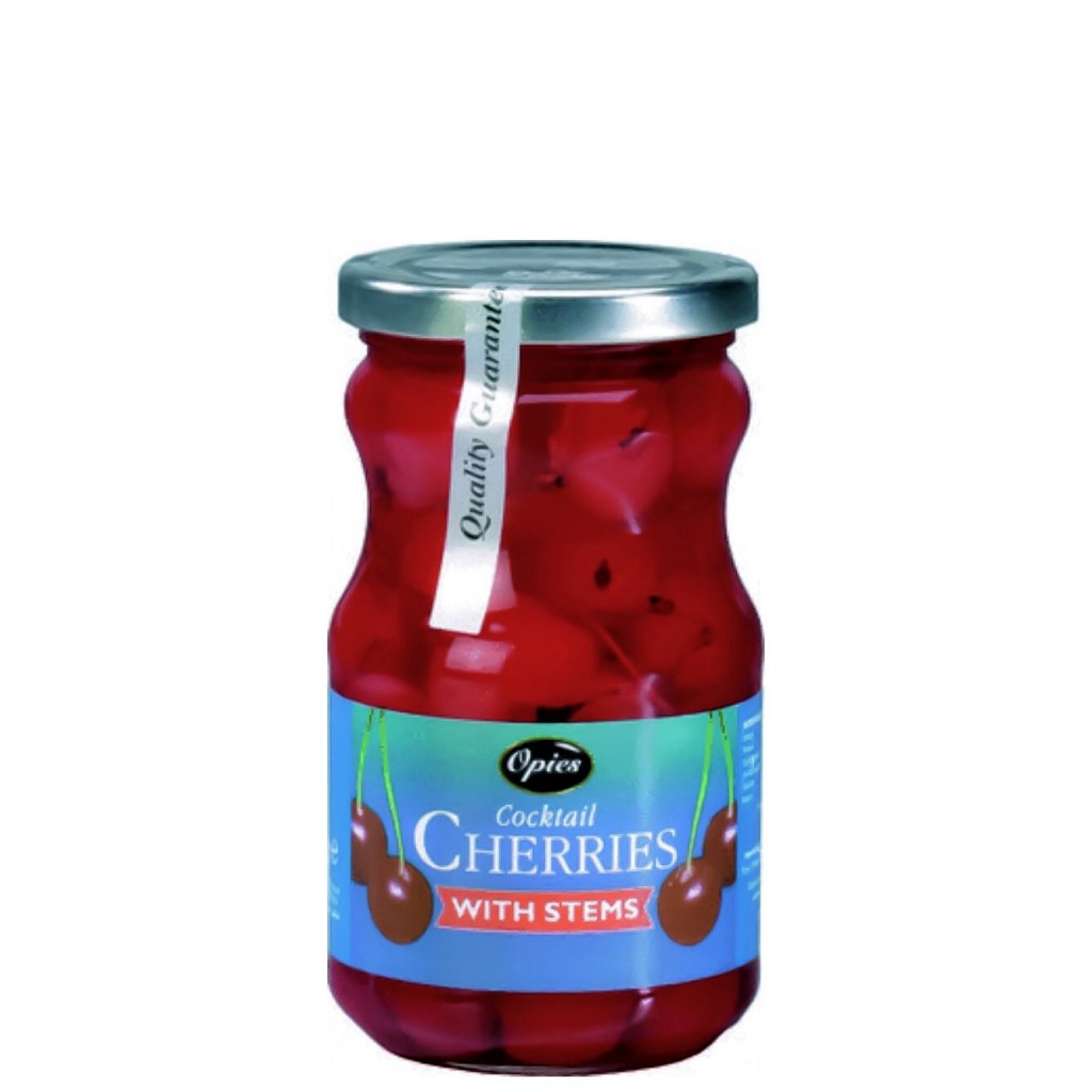 Cocktailbær med stilker. De klassiske cocktailbærene med stilker, perfekt til cocktailer som for eksempel Manhattan. Disse kirsebærene er nøye utvalgt og modnes i en lake sammen med stilkene, og har det perfekte utseendet for drinker og cocktailer.