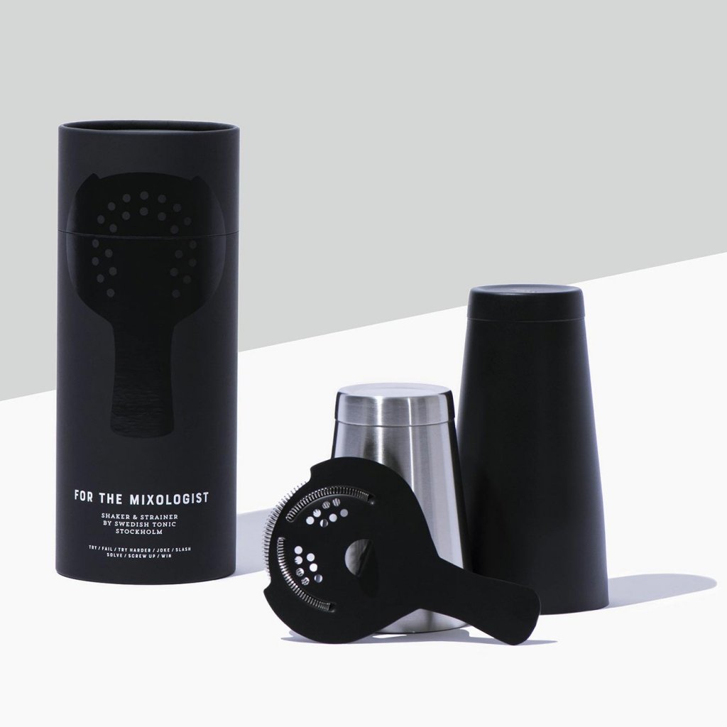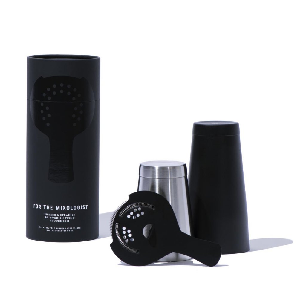 Swedish Tonic - Shaker og cocktailsil. Swedish Tonic Cocktailshaker og sil er laget av børstet rustfritt stål. Underdelen av shakeren og silen er belagt med sort farge av høyeste kvalitet.