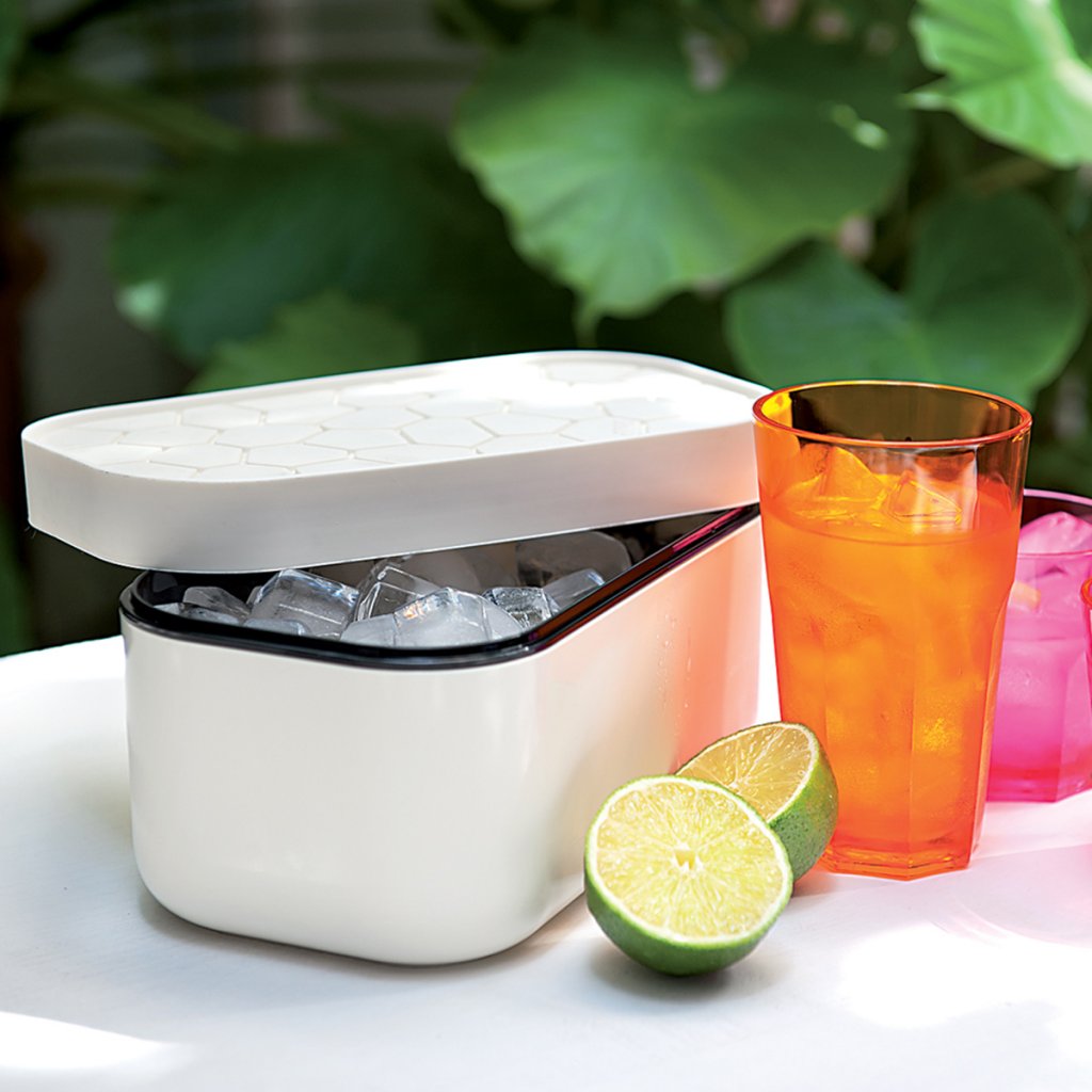 Ice Box fra Lékué er en stilig og smart isboks med lokk i platinasilikon der du kan lagre opptil 132 isbiter i noen timer avhengig av omgivelsestemperaturen.