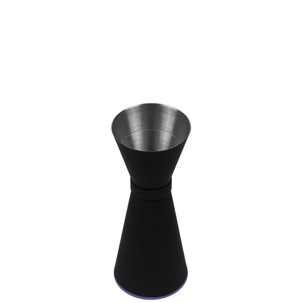 Jigger i japansk stil - svart. Veldig stilig jigger designet i den klassiske japansk stilen for barutstyr. Utvendig er den malt med en matt svart farge, og på innsiden er den børstet rustfritt.Vol: 60 & 30 ml