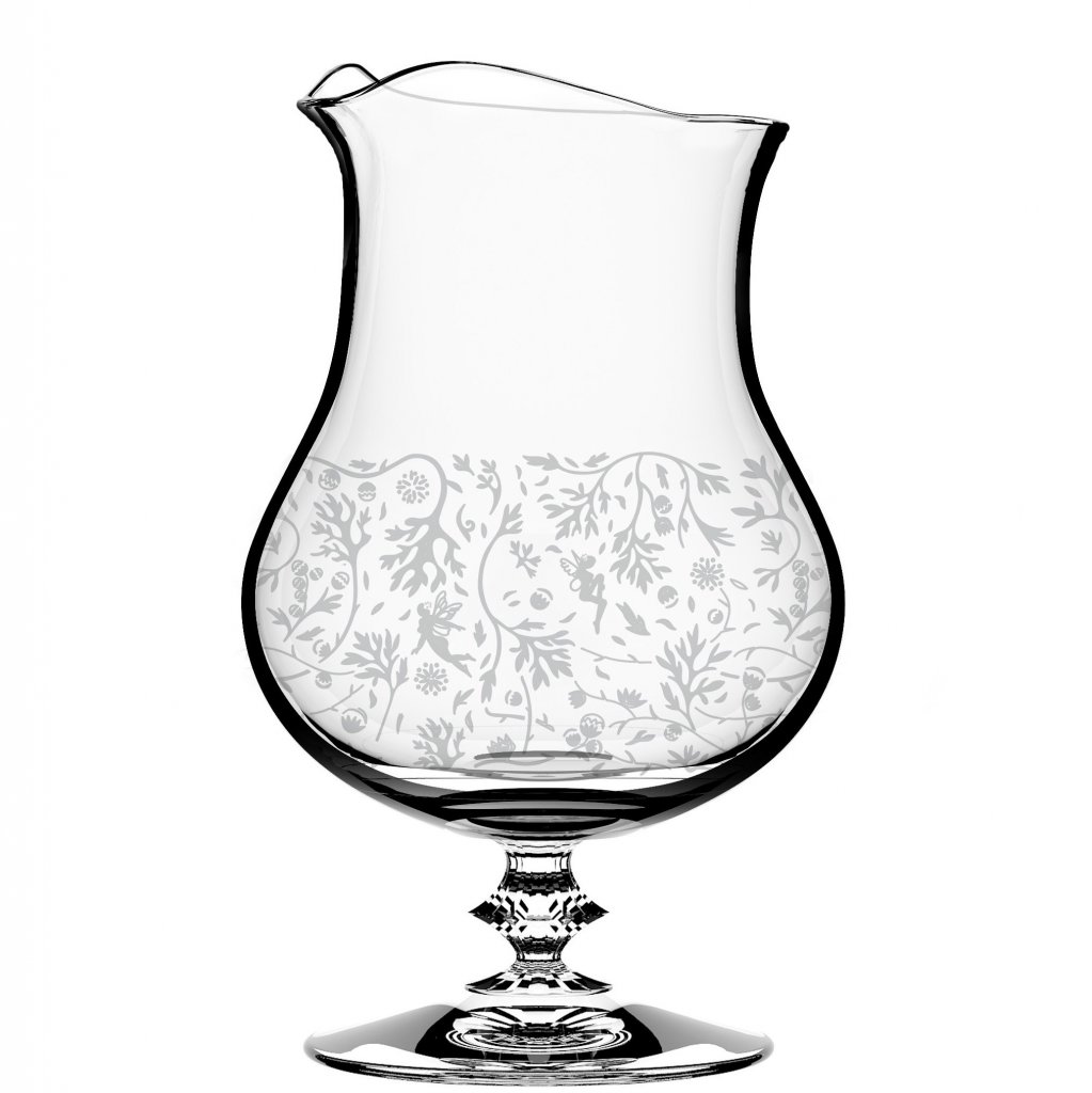 Wormwood Gallone rörglas. Ett utsökt rörglas på fot från Italesse. Wormwood Gallone är elegant dekorerat med graverade malörtsblad, blommor och små féer. Den välvda formen ger en klassisk känsla som i kombination med de dekorativa inslagen skapar en tidlös, modern känsla. Stjälken är vackert slipad med en dekorativ diamantliknande form som sprider en elegant lyster till detta rörglas, som även lämpar sig utmärkt som serveringskanna.
