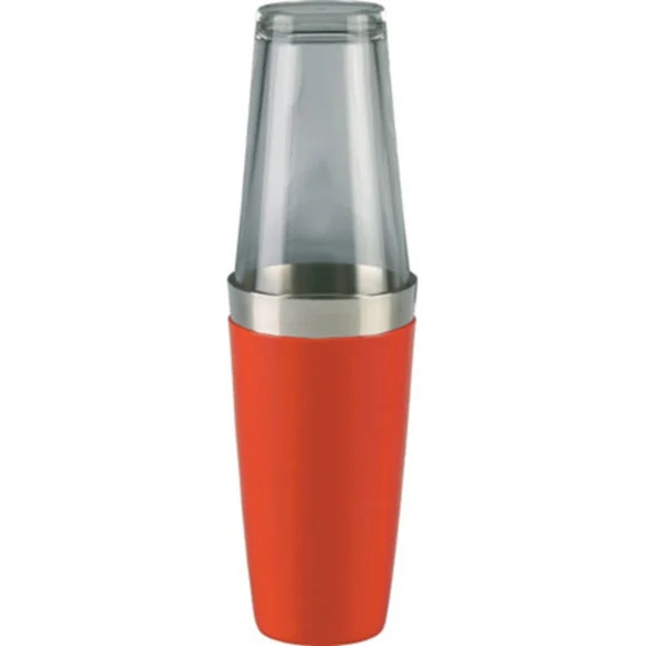 Bostonshaker i metall med rødt gummibelegg er et kraftfullt og profesjonelt bartilbehør som kombinerer klassisk design med tydelig karakter. Den består av en solid metalldel med gummibelegg og et shakerglass – en velprøvd konstruksjon brukt av bartendere verden over.