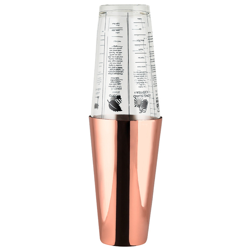 Kopparpläterad shaker av modellen Boston shaker. Elegant utformad i rostfritt som pläterats med koppar på utsidan. Idealisk för att blanda alla typer av skakade drinkar och cocktails med stil.Volym: 82 clShakerglas ingår ej.