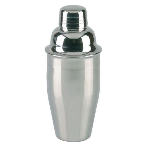 Tredelt cocktailshaker, polert. En profesjonell og praktisk shaker i rustfritt stål utstyrt med en sil i lokket. Denne modellen er designet med en liten kant på lokket, noe som gjør den lettere å åpne. Profesjonell modell av høyeste kvalitet.Volum: ca. 65 cl
