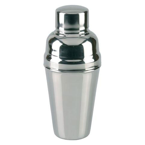 Tredelt cocktailshaker, polert. En stilig, polert shaker i rustfritt stål utstyrt med en sil i lokket. Profesjonell modell av høyeste kvalitet.Høyde: 22 cmVolum: 62,5 cl