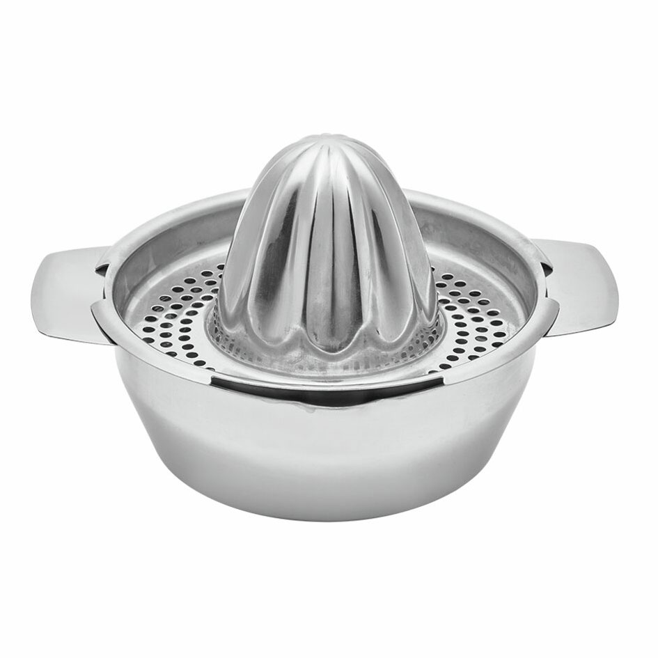 Sitruspresse i rustfritt stål – klassisk og tidløs. Det tradisjonelle designet gjør at du kan vri frukten for hånd direkte mot kjeglen, noe som gir maksimal saftutvinning uten styr.