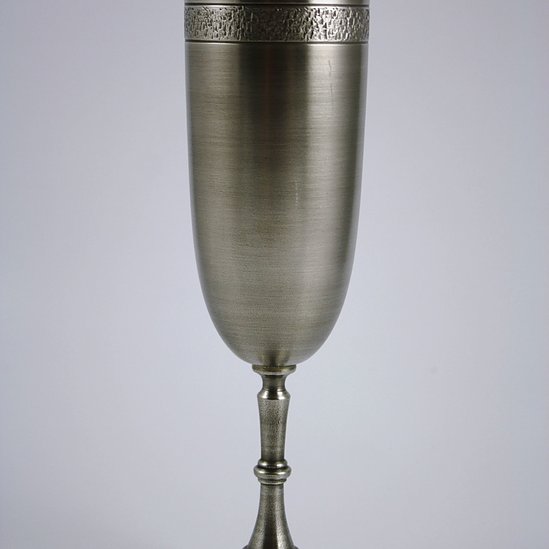 Champagnebägare i tenn från Härryda Tenn AB. Vackert svenskt hantverk. En elegant utformad champagnebägare i tenn. Champagnebägaren har en smal, lätt expanderande kupa med en dekorativ gravyr som löper längs med toppen.
