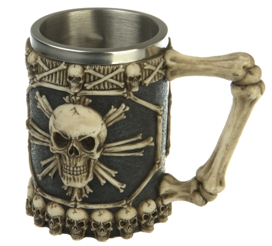 För det här är inte vilken dödsskallebägare som helst. Den är utsmyckad med små skallar och skelett längs med hela glaset och handtaget är snidat av tre skelettben.