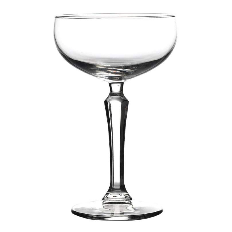 Speakeasy Coupe champagneglass 20 cl. Et vakkert, klassisk balkongglass for champagne og cocktail designet i Art Deco-stil. Speakeasy Coupe har en rund, skålformet kropp og en relativt høy fot som er sekskantet slipt med en vakker profil.