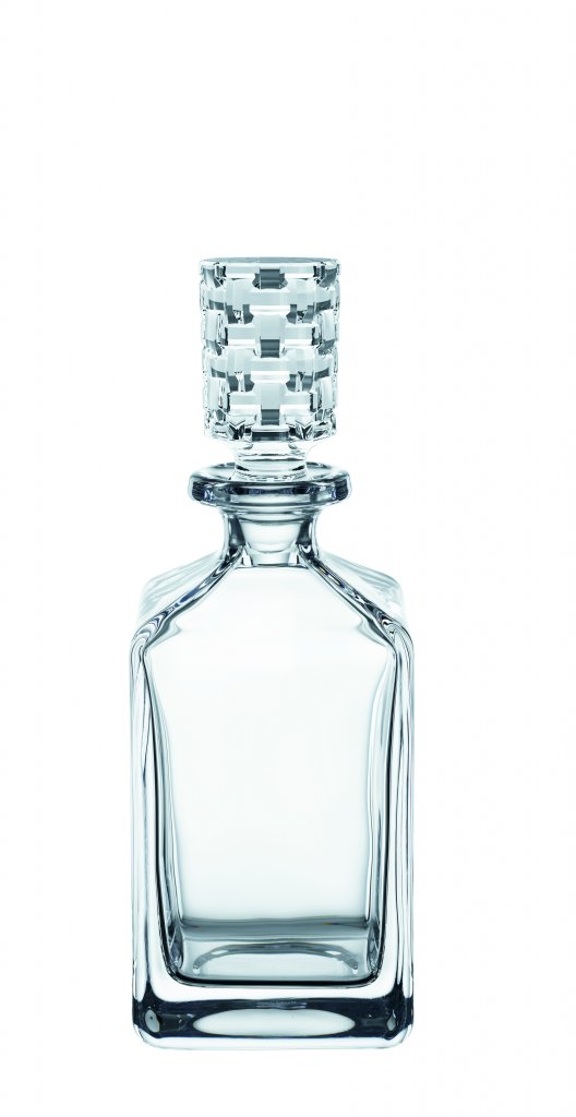 Bossa Nova-pakken - 2 krystallglass og en whiskykaraffel. Utsøkt whiskykaraffel i svært klar krystall fra tyske Nachtmann. Bossa Nova-serien er kontrastrik, men likevel homogen serie inspirert av den brasilianske musikksjangeren. Whisky-karaffelen har klare linjer og en mønstret og elegant glasskork. De to glassene har klare rette linjer og er dekket av det delikate mønsteret på utsiden. Et sett med glass og karaffel som løfter presentasjonen av en eksklusiv whisky, konjakk eller annet destillat.