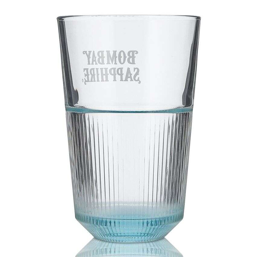 Bombay Sapphire highballglass som lar deg blande og servere en klassisk Gin & Tonic med en tidløs og elegant følelse. Dette drinkglasset har en stilfull riflet kontur langs bunnen som går over i en rund form.