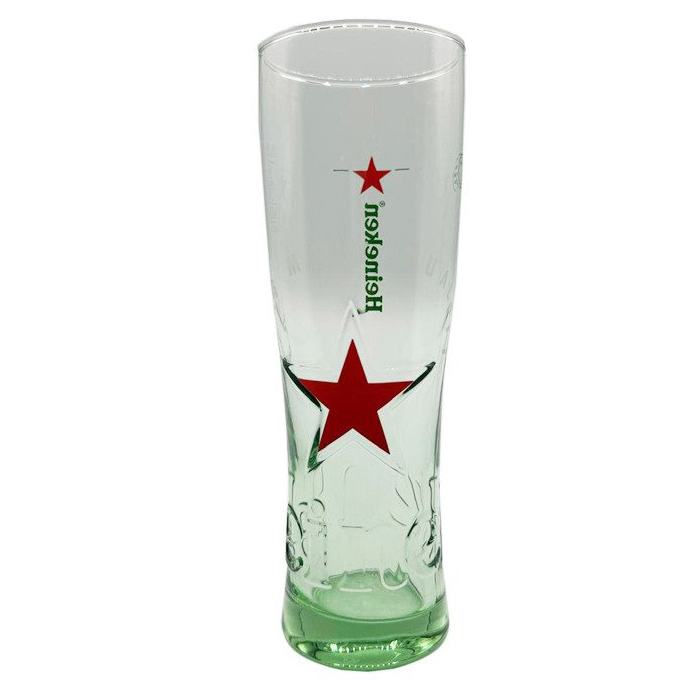 Heineken ølglass 40 cl til den nederlandske klassikeren som alle liker! Nyt Heineken i et ekte Heineken ølglass. Den nye glassmodellen har Heinekens logo trykket i farger foran og på den andre siden på den nederste halvparten av glasset er det en stjerne i relieff. Rundt hele den nedre delen av hele glasset står Heineken i relieff.