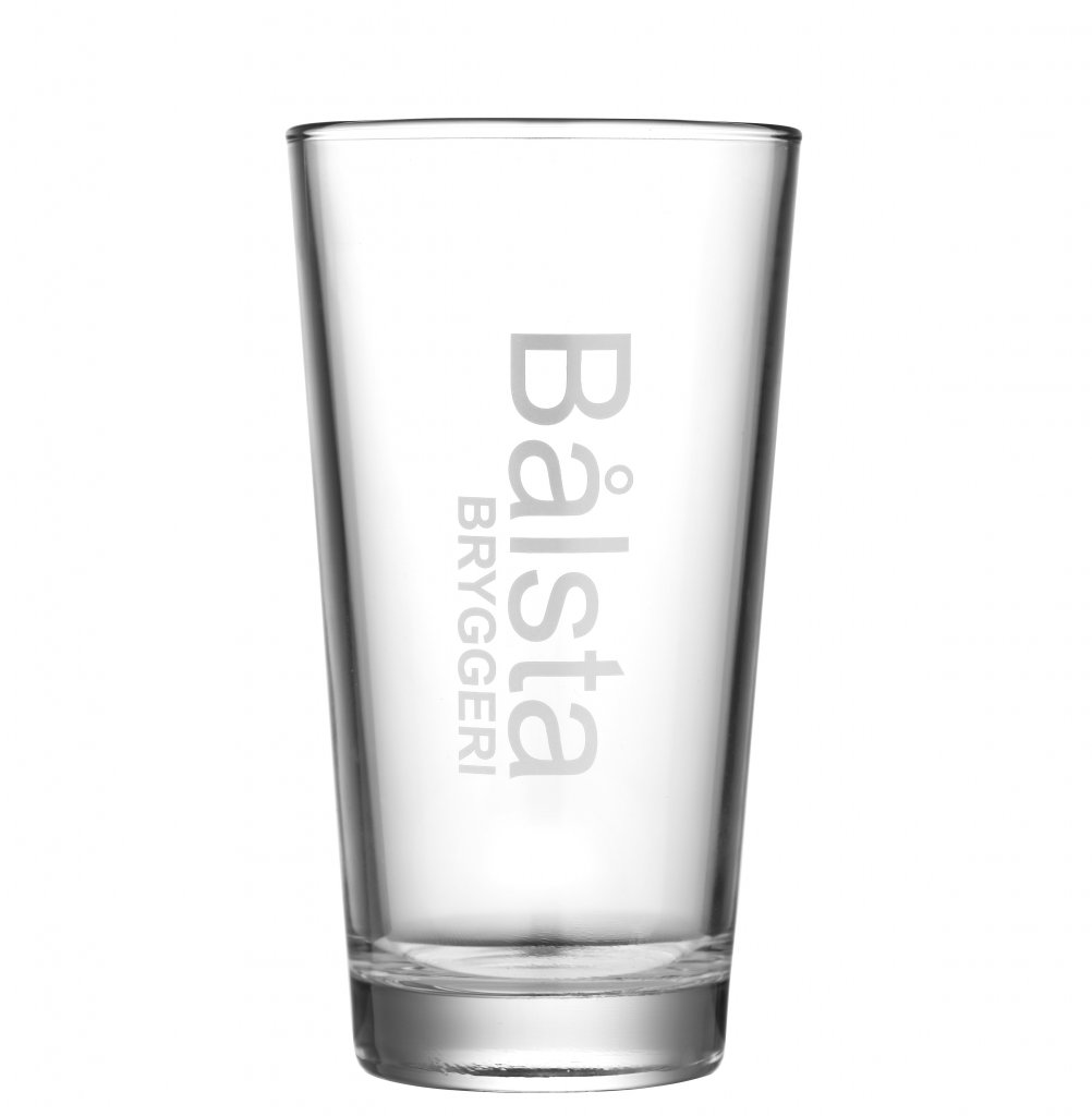 Bålsta Bryggeri ølglass. Med håndverket i fokus produserer Bålsta bryggeri ølet sitt i liten skala, og med stort fokus på ingredienser. Stilene varierer mye, men først og fremst fokuserer Bålsta Bryggeri på overgjæret øl, eller ale. Gjerne med mye humle! Bålsta Bryggeris ølglass har den klassiske formen American Lager og har logoen til Bålsta Bryggeri på forsiden.
