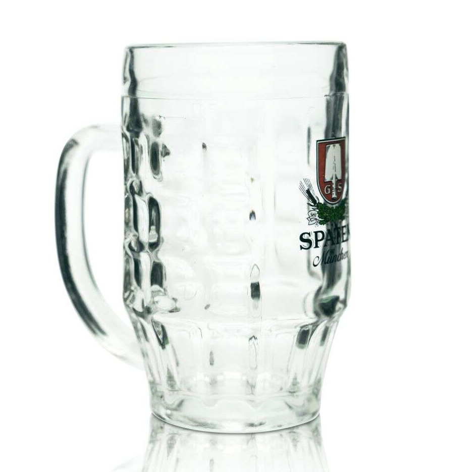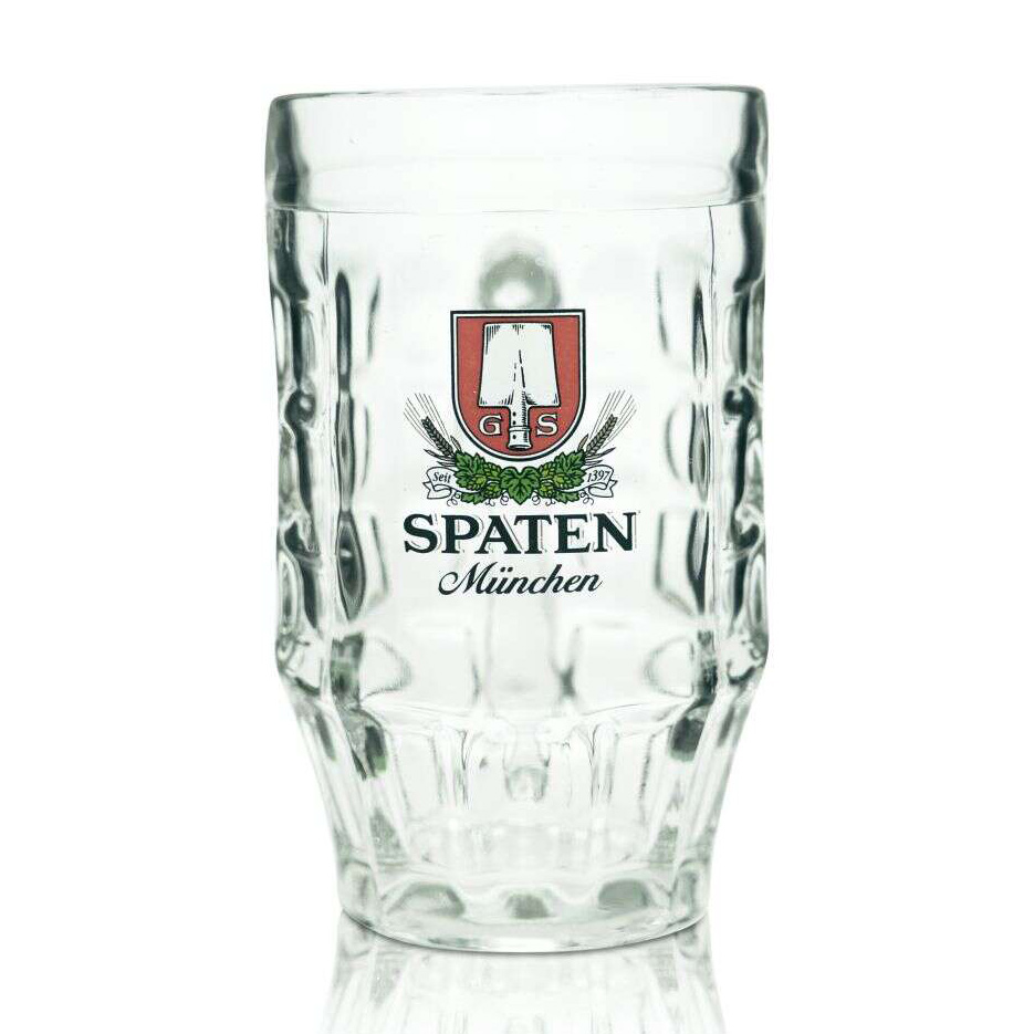 Spaten ølseidel 50 cl for det berømte bayerske lageret hvis emblem er en spade. Spaten betyr nettopp spade på tysk, og akkurat deres er selvsagt en tradisjonell maltspade. Denne ølseidelen er bredere for riktig følelse og har et håndtak for økt grepevne. Spaten-logoen med spaden er trykt foran og markering for 50 cl på siden.
