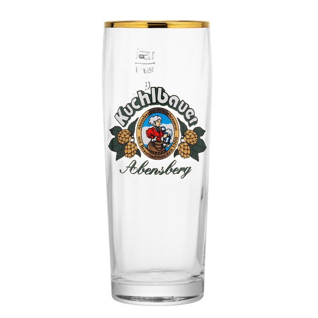 Kuchlbauer ølglass 40 cl. Det tyske bryggeriet i Abensberg stammer fra 1300-tallet. I dag lager de seks slag hveteøl. Nyt en av variantene, eller alle, i dette profilglasset.