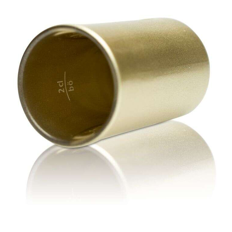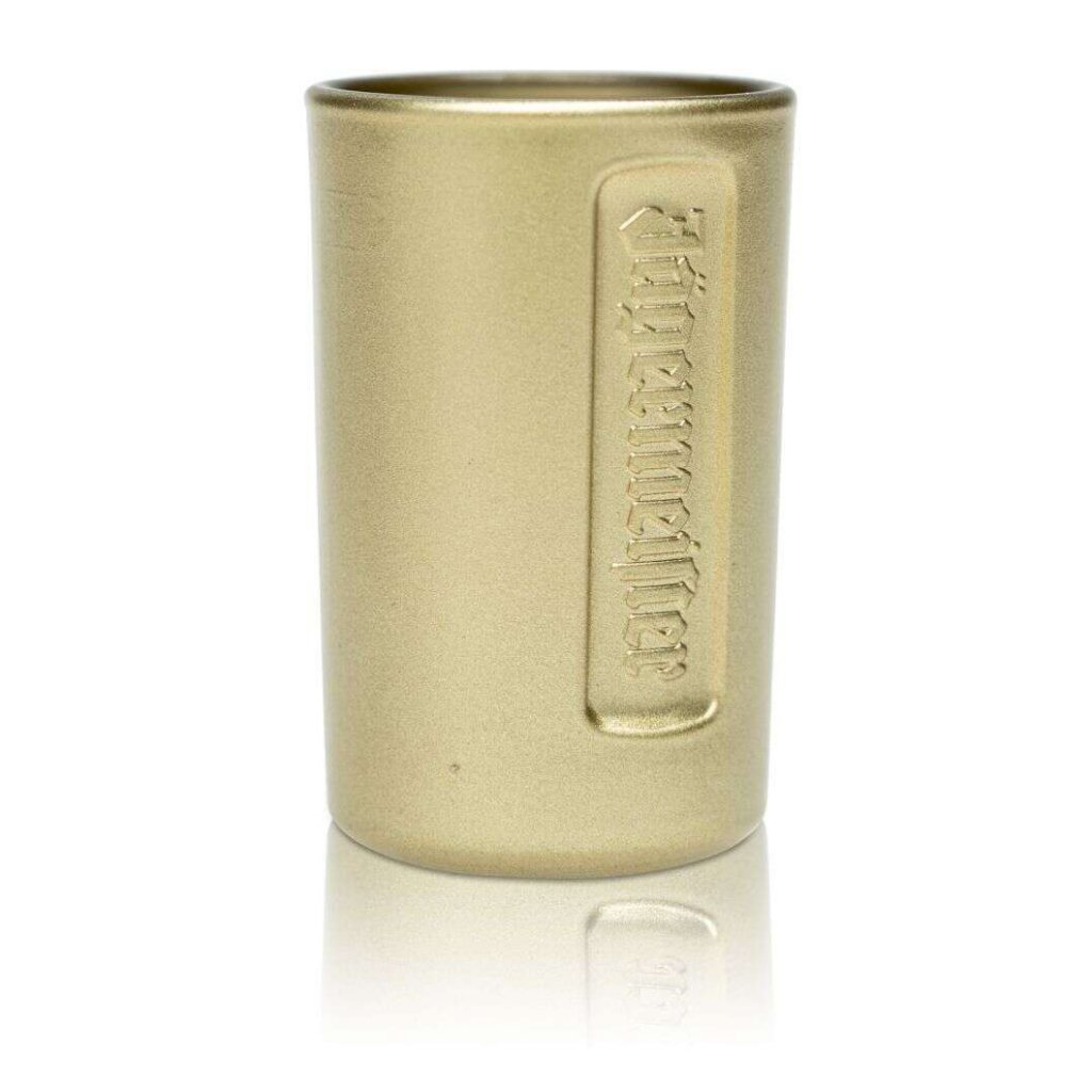 Shot glass fra Jägermeister i gullfarge som rommer 2 cl. Glasset har Jägermeister-logoen skrevet i glasset slik at det er synlig på utsiden. Stilige glass å servere en iskald Jägermeister-shot ut av. Glasset har en nivåmarkering på 2 cl på innsiden.