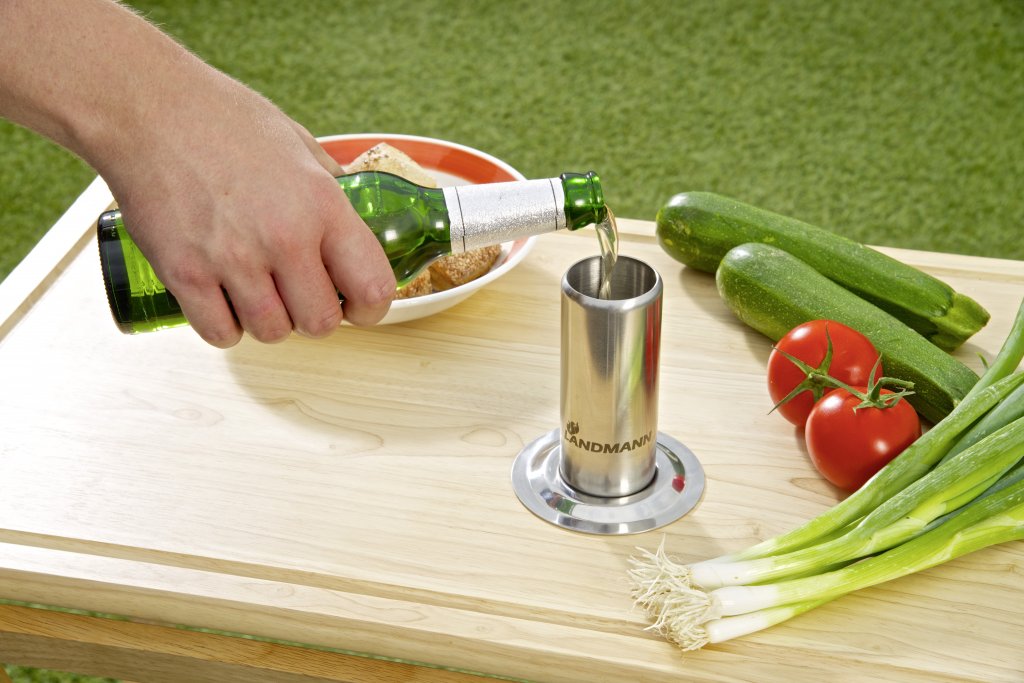 Med detta cylinderformade rör kan man grilla en perfekt Beer Can Chicken med massor av spännande ingredienser. Landmanns Beer Can Chicken grillrör är format som en större ölburk, men är tillverkad i rostfritt stål och går att använda både på grillen och i ugnen. Fyll röret med öl och vitlök, apelsinjuice eller liknande och applicera en hel kyckling. Låt kycklingen grillas i 1,5 till 2 timmar i ca. 150°. Ett roligt och effektivt sätt att få en riktigt smakrik och saftig grillad kyckling.