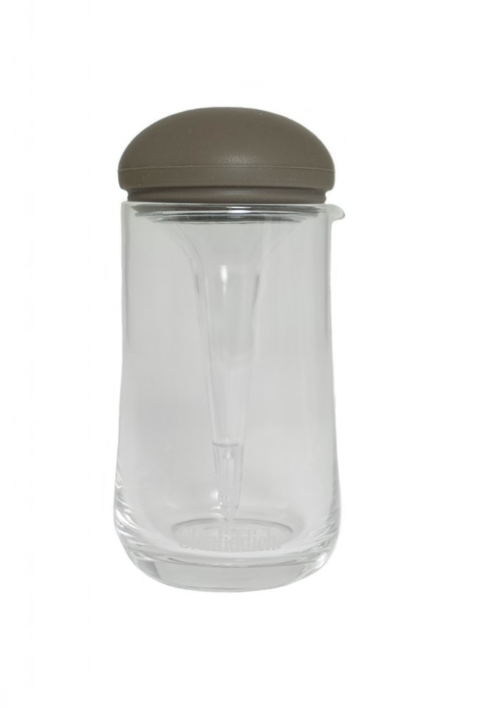 Glenfiddich vattenkaraff med pipett. En riktigt stilig vattenkaraff med tillhörande pipett från det skotska destilleriet Glenfiddich. Karaffen är har en bred öppning och en liten pip och har Glenfiddich logga står tryckt på framsidan. Pipetten passar som lock åt karaffen och är tillverkad av transparent plast och brunt gummi. Gummidelen har en läcker prägling av Glenfiddich logga upptill.